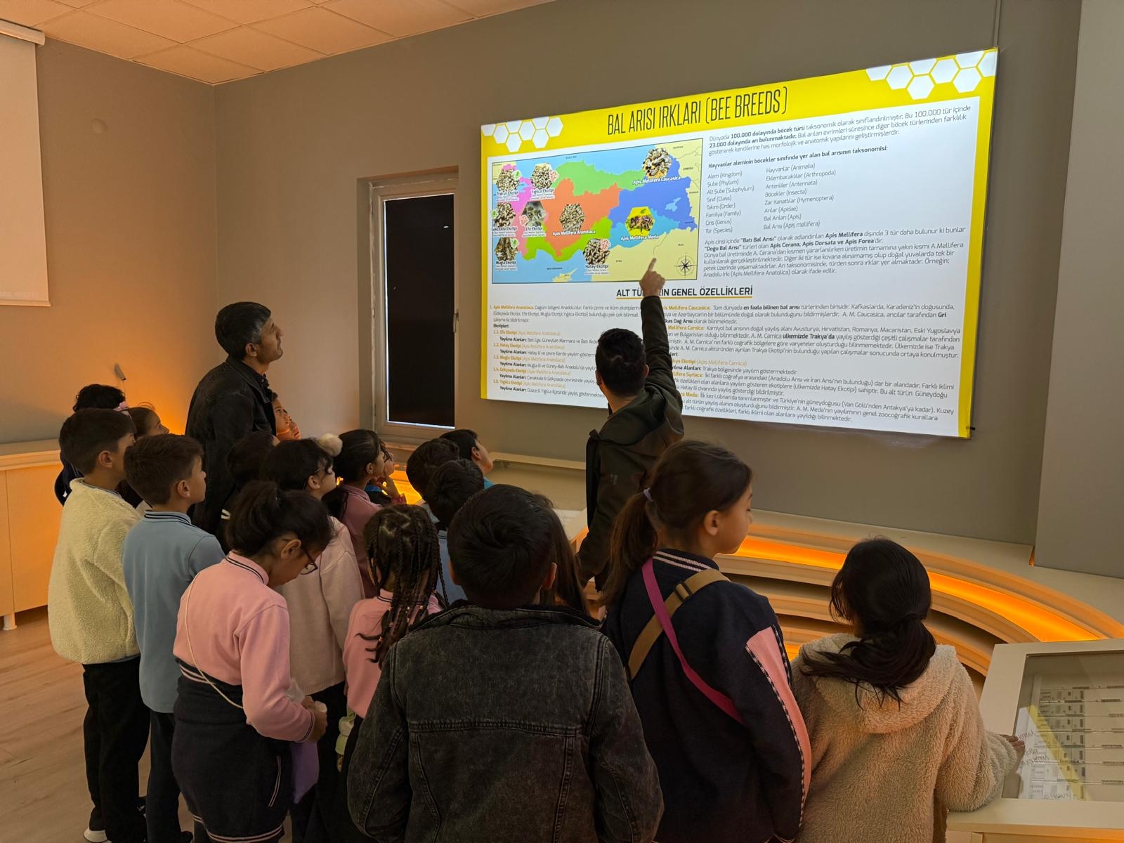 23 Şubat İlkokulu Öğrencileri Arı Müzesi'nde Biyoçeşitliliği Keşfetti "Yeşil Vatan Projesi" kapsamında Ardahan 23 Şubat İlkokulu öğrencileri, doğanın vazgeçilmez unsurlarından biri olan arılar hakkında bilgi edinmek üzere Arı Müzesi'ni ziyaret etti. Gerçekleştirilen gezide öğrenciler, arıların ekosistemdeki rolü, biyolojik çeşitliliğe katkıları ve çevre için taşıdıkları önem üzerine bilgi sahibi oldu. Arıcılık kültürünün geçmişten günümüze uzanan serüvenini de yakından görme fırsatı bulan öğrenciler, doğayı koruma ve çevre bilincini geliştirme konusunda farkındalık kazandı. Ziyaretin, öğrencilerin çevre okuryazarlığını güçlendirmesi ve sürdürülebilir yaşam konusunda duyarlılıklarını artırması hedeflendi.